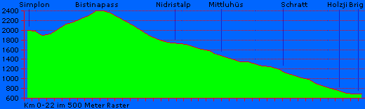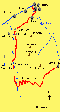 Brig. Diese Wanderung kann trotz der 22 km Länge als «einfach» eingestuft werden. Sie weist keine extremen Steigungen und Gefälle auf, führt über sehr gut unterhaltene Wege und ist bestens beschildert. |