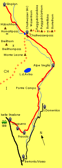 übernachtet. Der weitere Weg nach Trasquera - Iselle